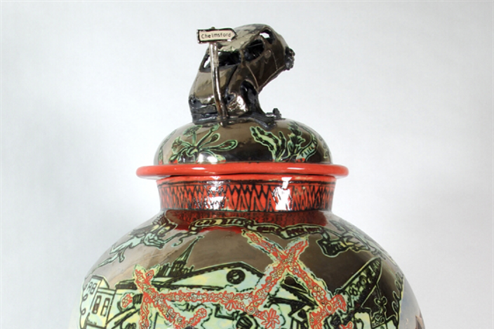 Grayson Perry grew up in Chelmsford and is one of the UK’s most prominent and incisive commentators on contemporary society and culture. He continues to make work in a variety of media but is best known for his ceramics. Thought provoking themes for his pots draw on personal and social concerns and are elaborately decorated.